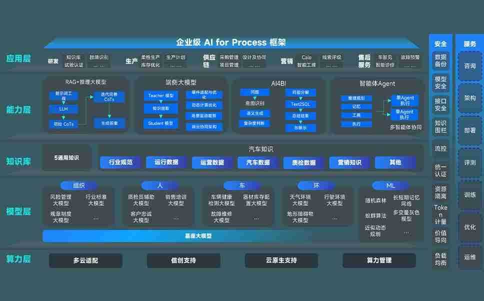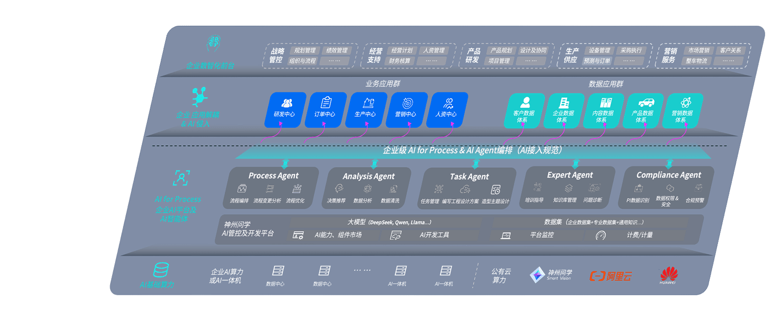 端到端的一站式AI工作空间深度融合了从企业战略规划到日常经营的全流程业务板块,,,定向解决车企内部领域多、、部门多、、、链条长、、、场景碎片化等难题,,支持车企快速构建以AI为核心的生产力写作体系,,实现任务执行与AI能力的无缝集成与交互