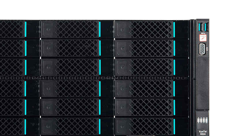 KunTai R524 存储型服务器是新博国际数码基于鲲鹏处理器推出的新一代 ARM数据中心服务器。。。主要面向存储业务,,具有海量存储、、、高性能、、低功耗以及易扩展的特点,,适合为大数据分析、、软件定义存 储等应用场景的工作负载进行髙效加速。。